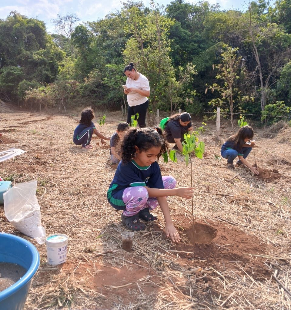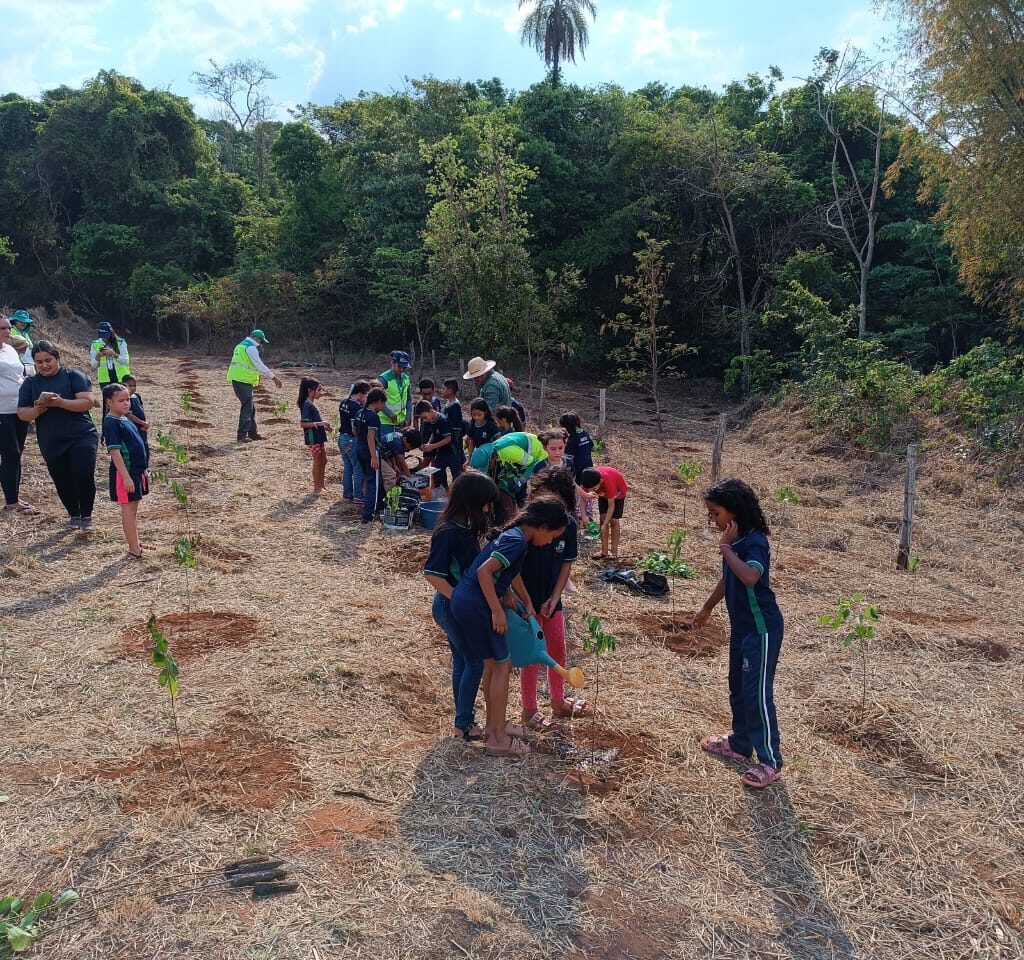 Na oportunidade, as crianças foram conduzidas até uma área disponibilizada por um parceiro para o plantio e receberam orientações sobre a importância da preservação do meio ambiente para a manutenção e continuidade da vida dos animais e seres humanos.